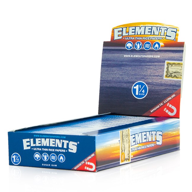 Elements rolling papers are made from pure rice and pressed to make it ultra slow burning and incredibly thin. Elements rice rolling papers are just that, no chemicals, no pulp and no hemp. Each Element rolling paper is watermarked with their proprietary CrissCross imprint. This special watermark helps prevent runs and maintains the smoothest burn. Elements rolling papers burn with zero ash, except for a tiny line of residue caused by the Acacia gum turning into caramel as it burns.